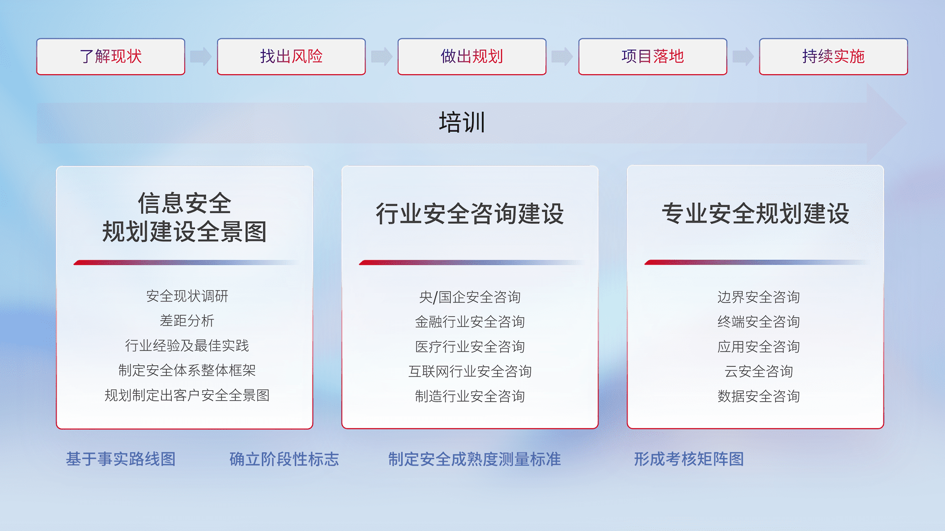 通过专业的法律咨询解读、、、合规架构体现、、、差异化解决方案、、、测试实施支持等服务,,为客户量身打造等保合规体系。。。